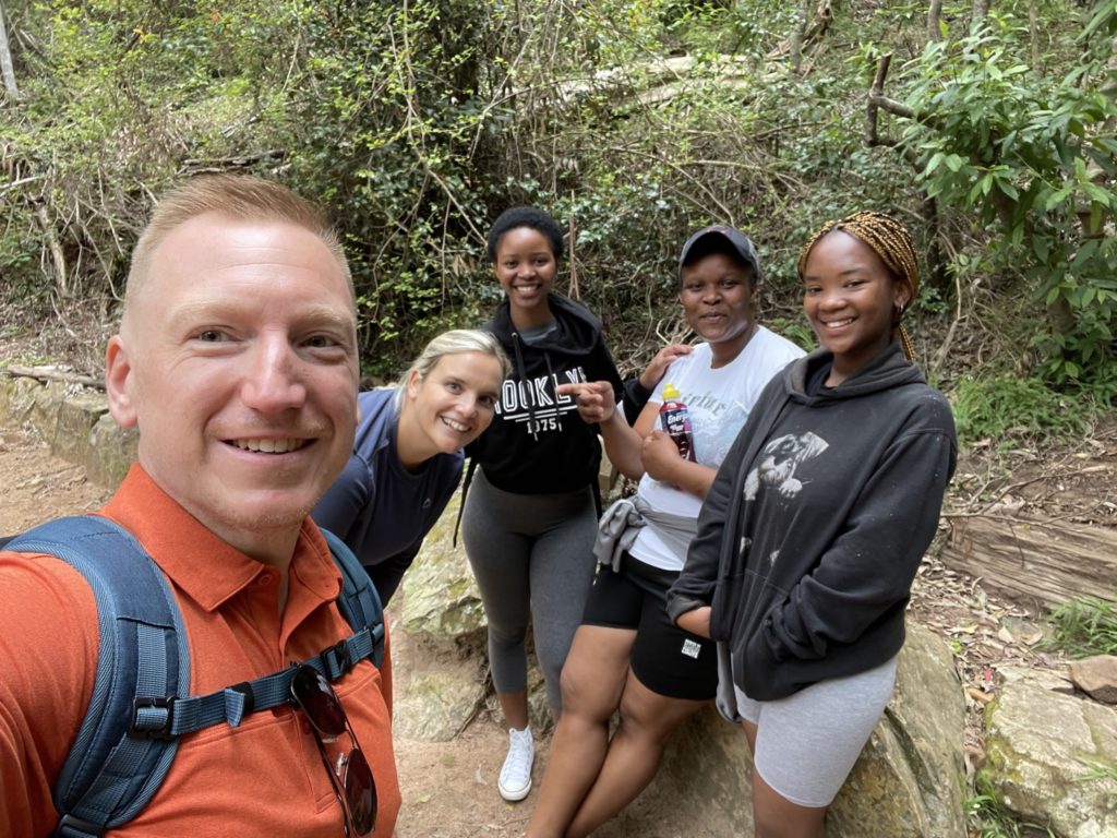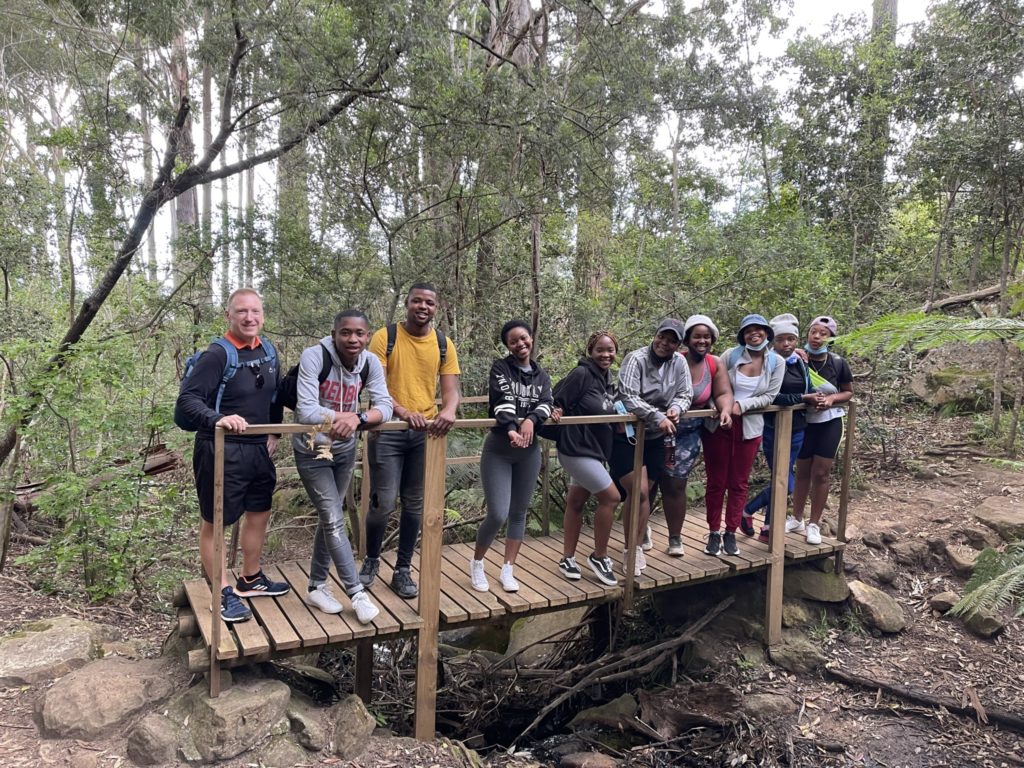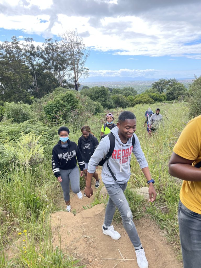 Im November 2021 findet unser zweiter Myoli Wandertag statt. Er führt uns zum Cecilia Wasserfall im Table Mountain National Park. Mit dabei sind alle Highschool- und College-Stipendiaten, die mit einem Minibus-Taxi aus Khayelitsha zum Treffpunkt gebracht werden. Wir verteilen Wasser, Sandwiches, Energy-Riegel und Obst und dann geht es auch schon los.