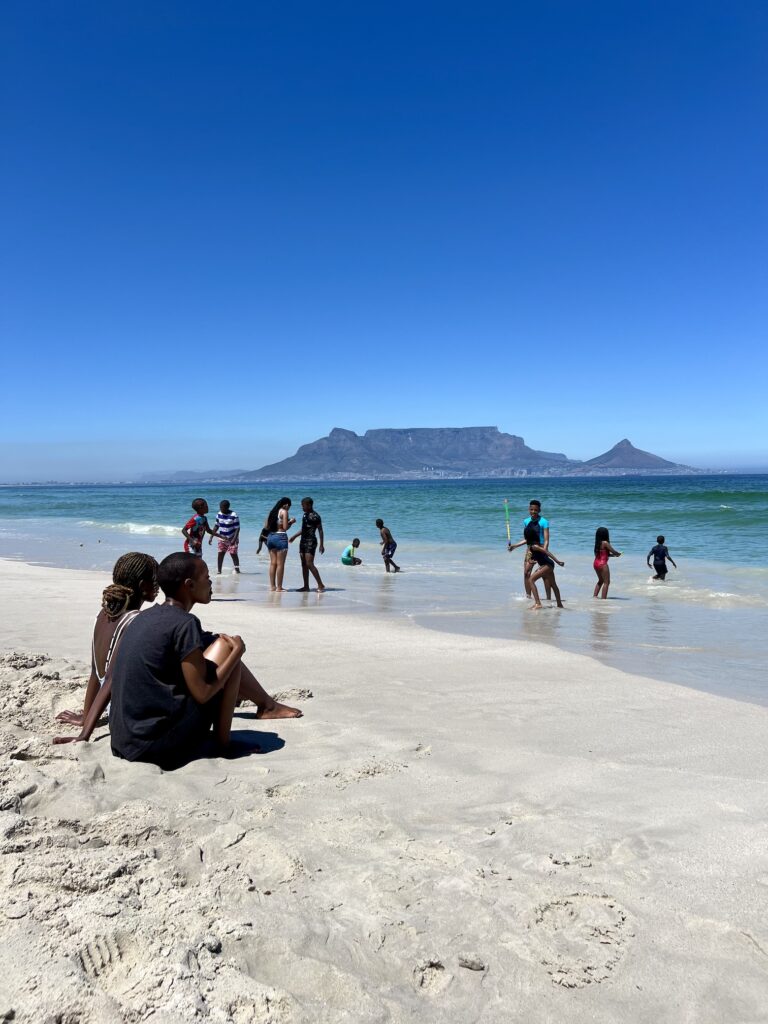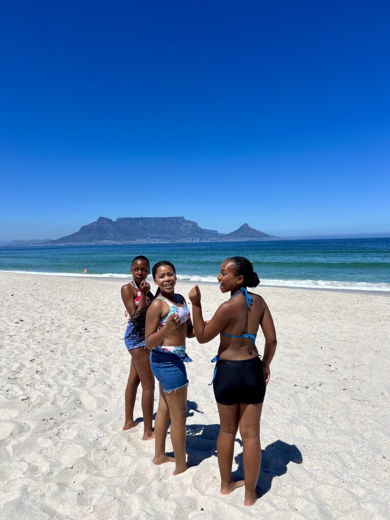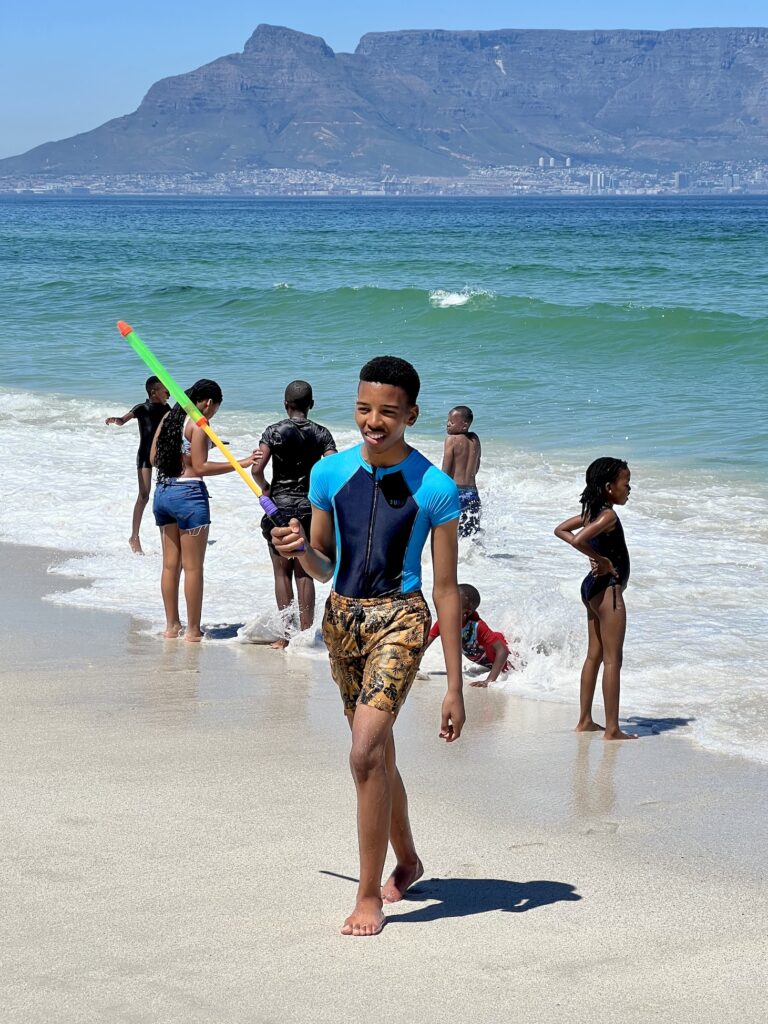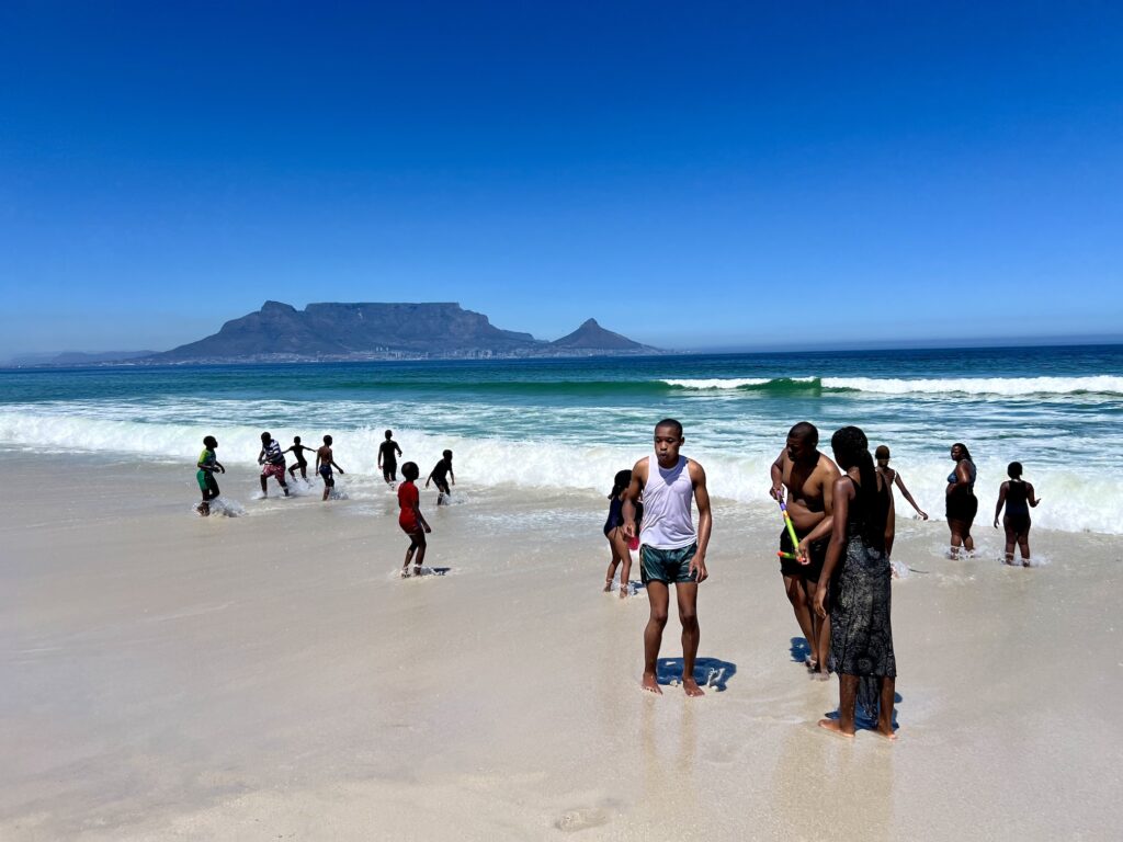 Wieder wurden die Stipendiaten mit zwei Minibussen aus Khayelitsha nach Bloubergstrand gebracht. Hier haben wir schon mit Getränken und Snacks auf die Kinder gewartet.