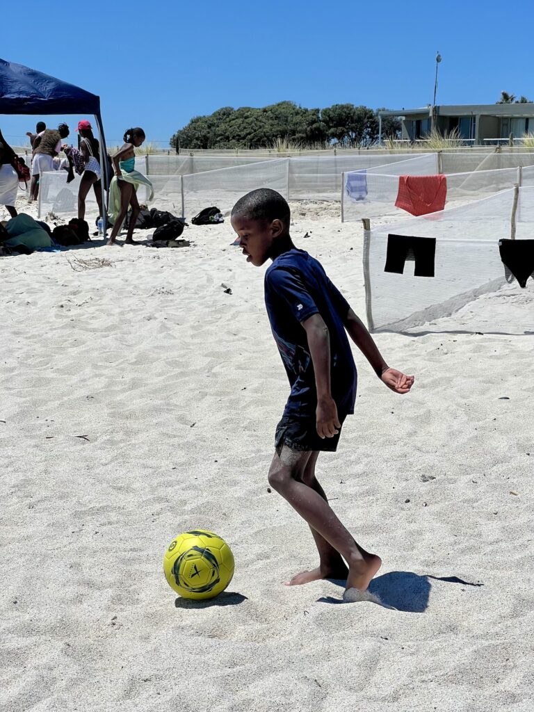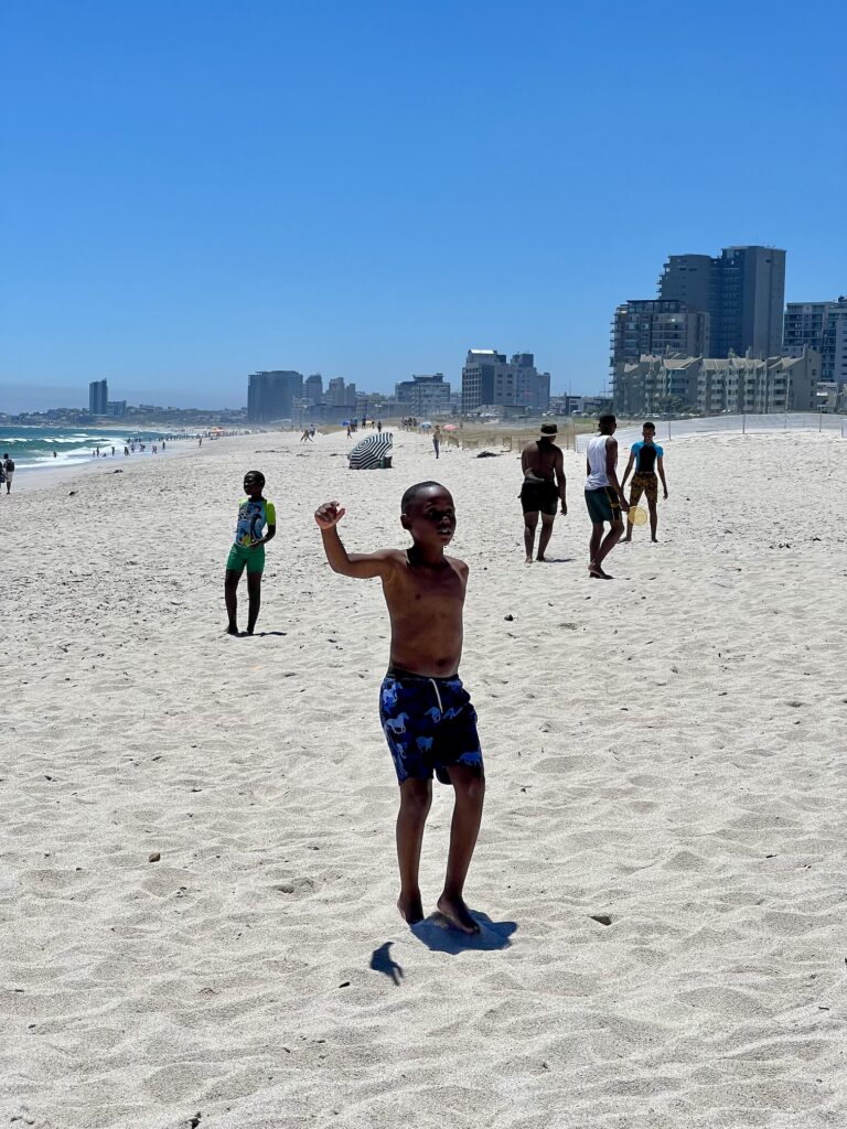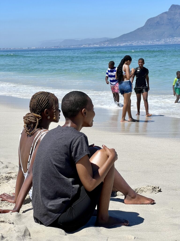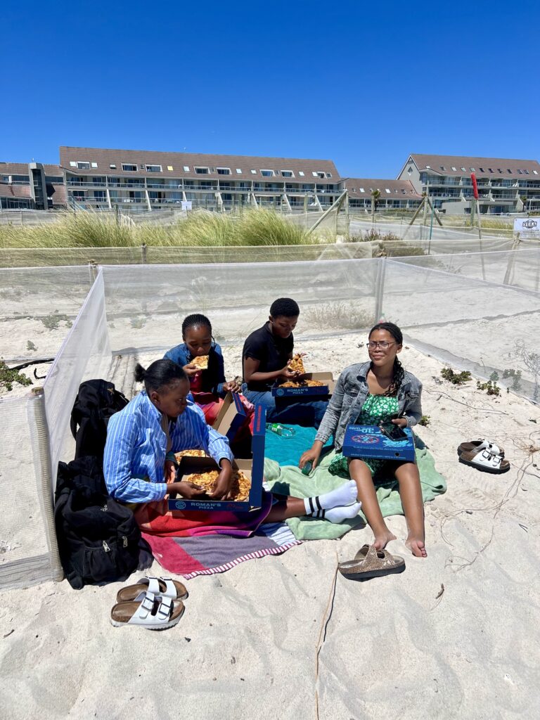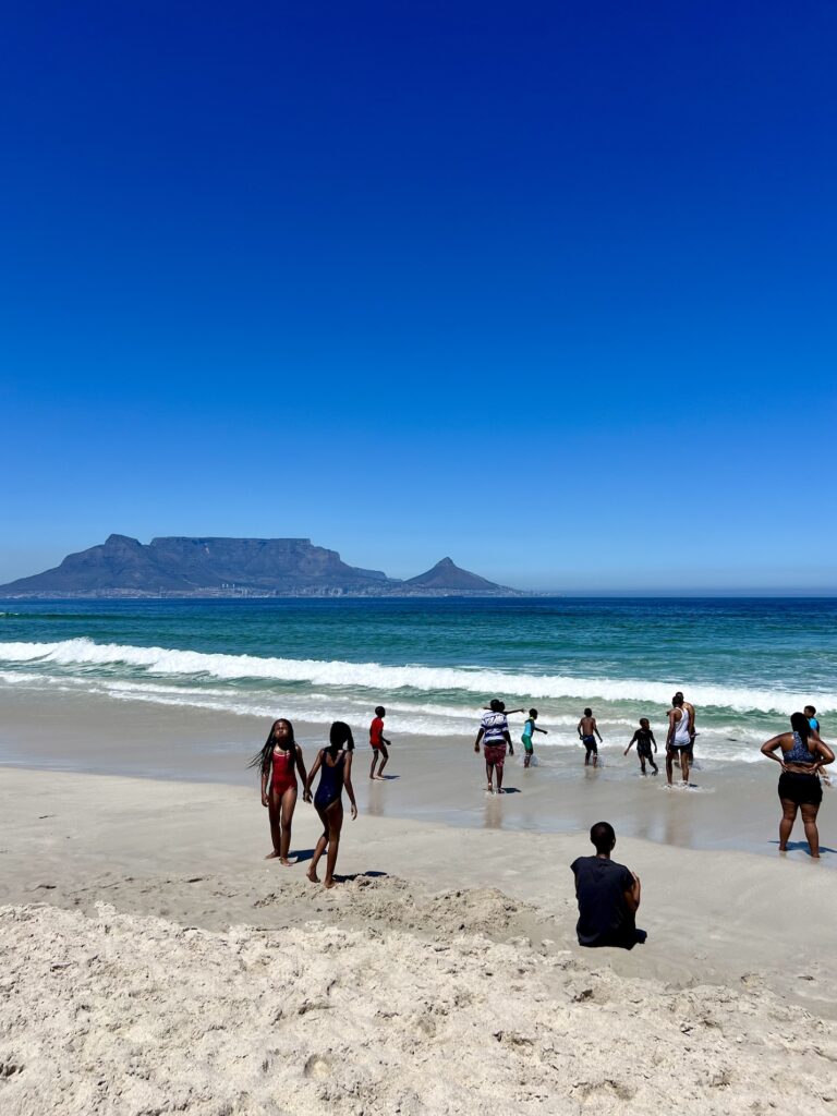 Wieder wurden die Stipendiaten mit zwei Minibussen aus Khayelitsha nach Bloubergstrand gebracht. Hier haben wir schon mit Getränken und Snacks auf die Kinder gewartet.