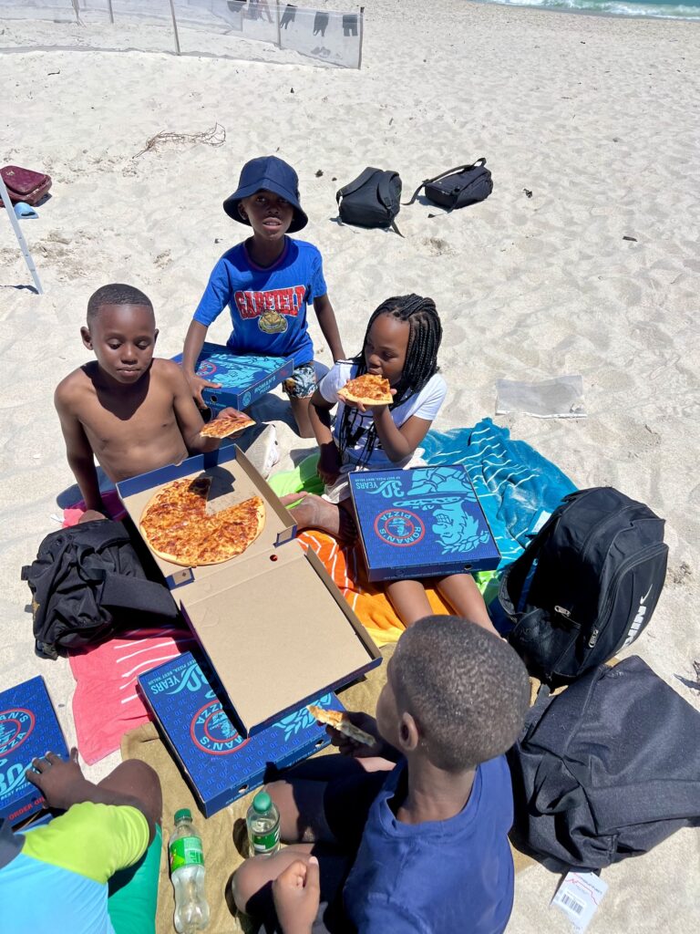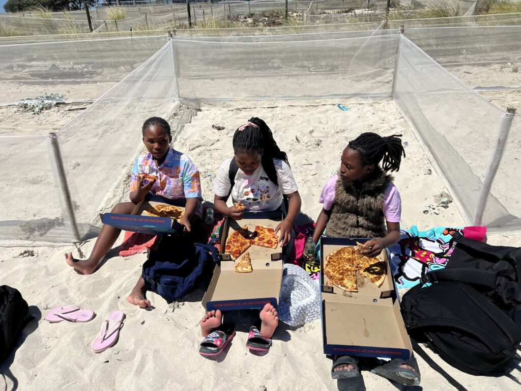 Zum Mittagessen haben wir Pizza bestellt und nach 5 Stunden Badespaß wurden die Kinder wieder mit den Minibussen ins Township gebracht.
