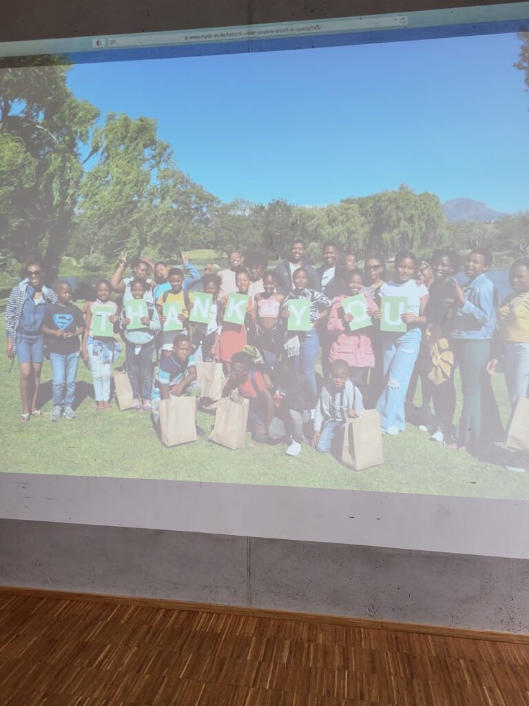 Begonnen wurde um 16:00 Uhr mit der Begrüßung und dem ungezwungenen Gespräch der Paten und den Myoli Vorständen. Bei einem Getränk fanden angeregte Gespräche statt, man lernte sich näher kennen und es konnten schon erste Fragen beantwortet werden. Gegen 17:00 Uhr berichteten unsere anwesenden Myoli Vorstände aus Südafrika, Anja und Sven, von ihrer Arbeit vor Ort und den betreuten Kindern, Jugendlichen und jungen Erwachsenen. Unter anderem wurde auf die Essenspakete, den Nachhilfeunterricht, die Wettbewerbe und Ausflüge eingegangen und alles anschaulich mit Fotos verdeutlicht. Dabei konnten jederzeit Fragen gestellt werden, so dass ein interessanter Dialog entstand.