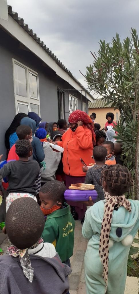 Der Myoli e.V. hat im Mai 2020 in Khayelitsha eine Suppenküche gegründet, um die Kinder während der Pandemie-Situation mit einer warmen Mahlzeit zu versorgen. Zunächst fand die Suppenküche einmal wöchentlich, dann dienstags und donnerstags statt. Jetzt konnte sie auf 3 Tage pro Woche ausgeweitet werden. Während zu Beginn 50 Kinder die Suppenküche besuchten, wuchs die Zahl schnell auf 150 Kinder pro Tag an.