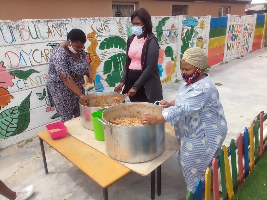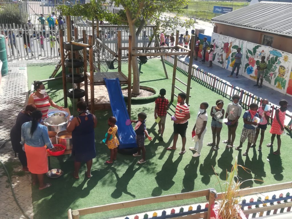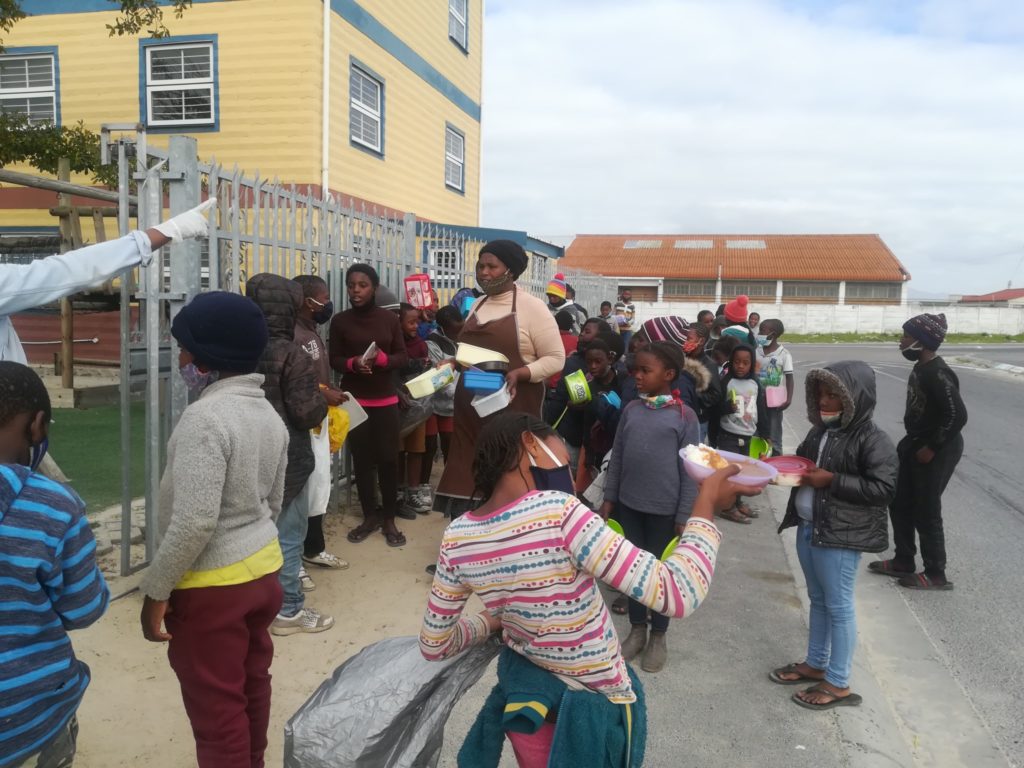 Seit Beginn der Pandemie setzt sich Myoli dafür ein, dass die Kinder im Township Zugang zu einer warmen Mahlzeit erhalten. Begonnen wurde im Mai 2020 mit einer Suppenküche in der Sisiphiwo Vorschule. Seit August wird die Suppenküche des Women for Peace Centers in Mfuleni mit Lebensmitteln unterstützt und jetzt auch das Khumbulani Kinderzentrum in Khayelitsha.