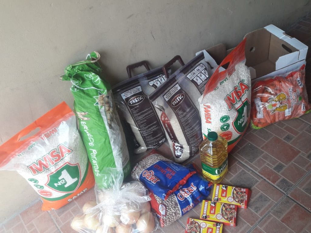 Viele Menschen haben während der Pandemie ihre Anstellungen verloren und sind auf die kostenfreie Verpflegung für sich und ihre Kinder angewiesen. Die erste Lieferung von 20 kg Reis, 20 kg Maisgrieß, 15 kg Kartoffeln, 10 kg Karotten, Bohnen, Zwiebeln, Öl und Gewürzen wurde in Khumbulani mit großer Dankbarkeit entgegengenommen.