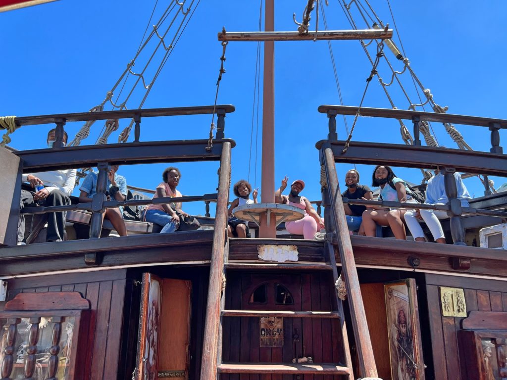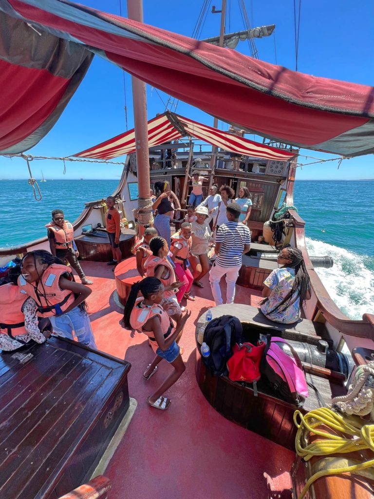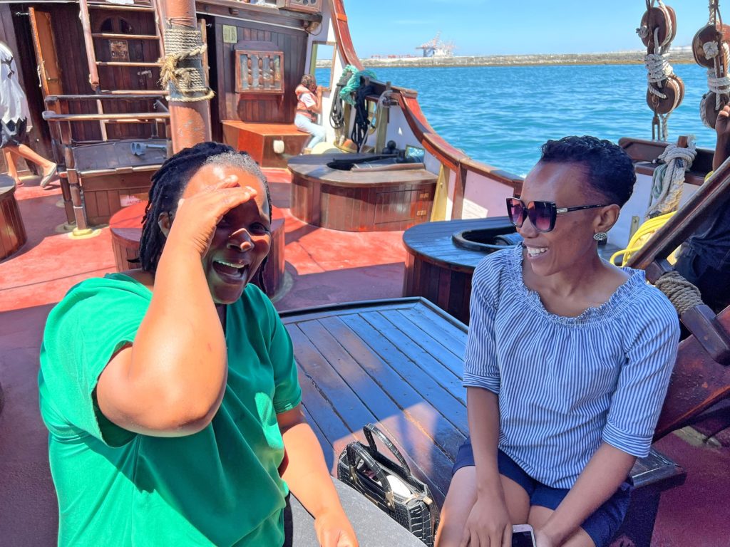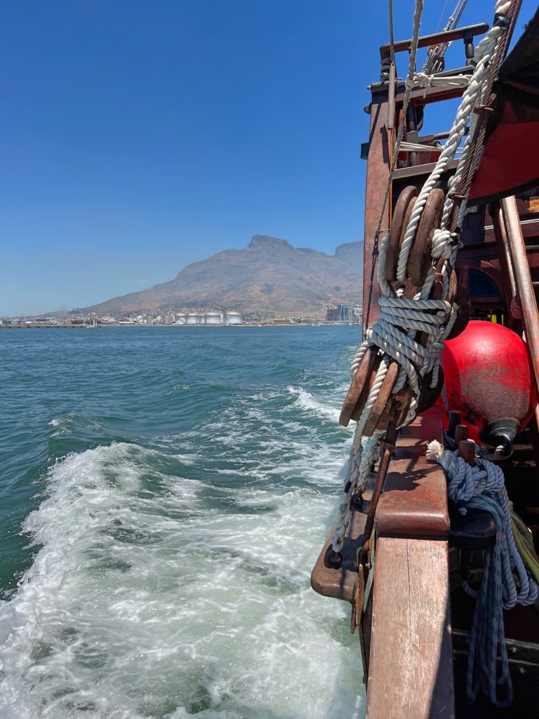 Im Anschluss sind wir dann zu einer einstündigen Bootstour in der Table Bay aufgebrochen. Es wurde getanzt und gelacht.