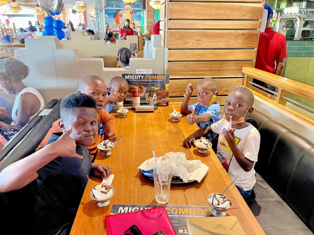 Dort haben wir die Kids mit Getränken und Snacks versorgt und die Briefe und Zeugnisse für die Pateneltern eingesammlt. Im Anschluss begann dann das Programm.