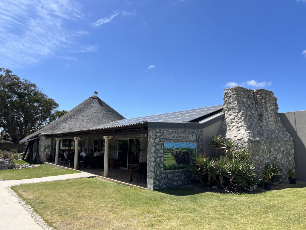 In einem offenen Planwagen haben wir das 1.600 Hektar große, familiengeführte Reservat erkundet, in dem 4 der „Big 5“ (Löwe, Büffel, Nashorn und Leopard) beheimatet sind. Buffelsfontein bietet die einzige Möglichkeit, im Western Cape Nashörner zu sehen.