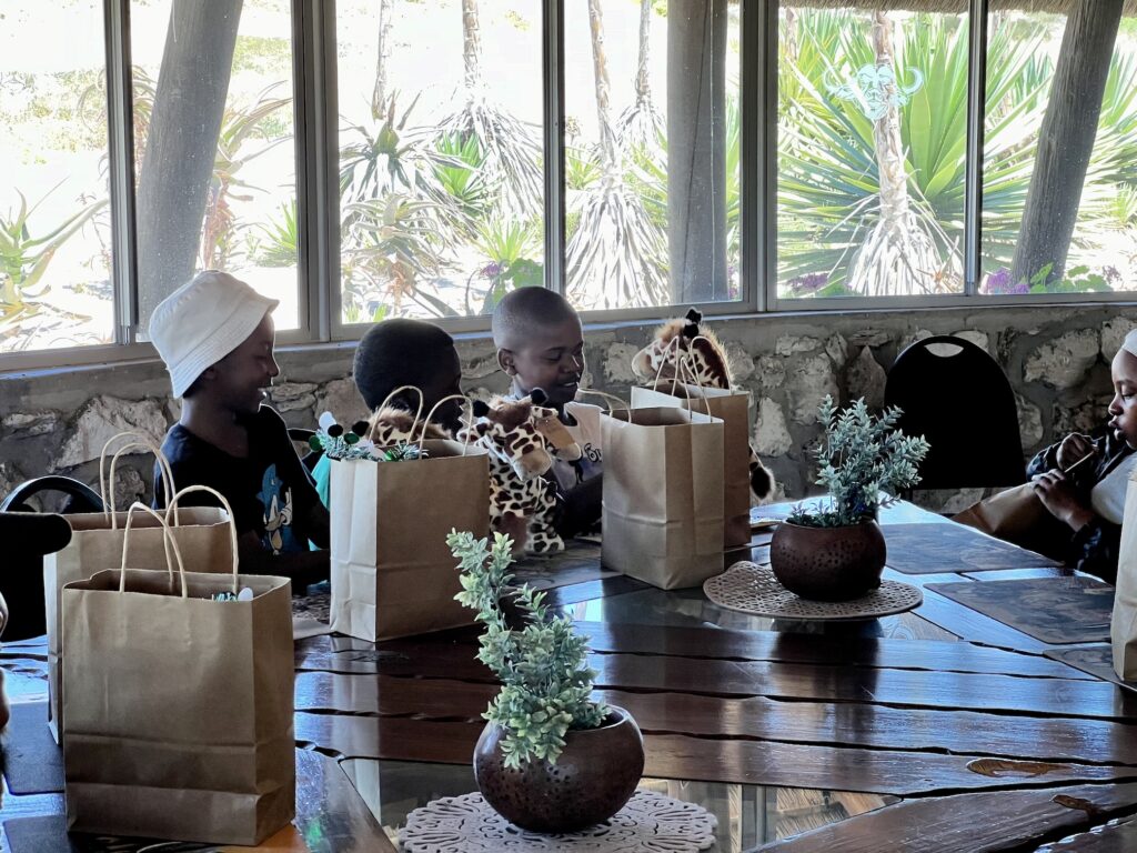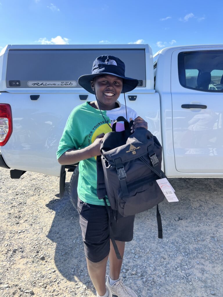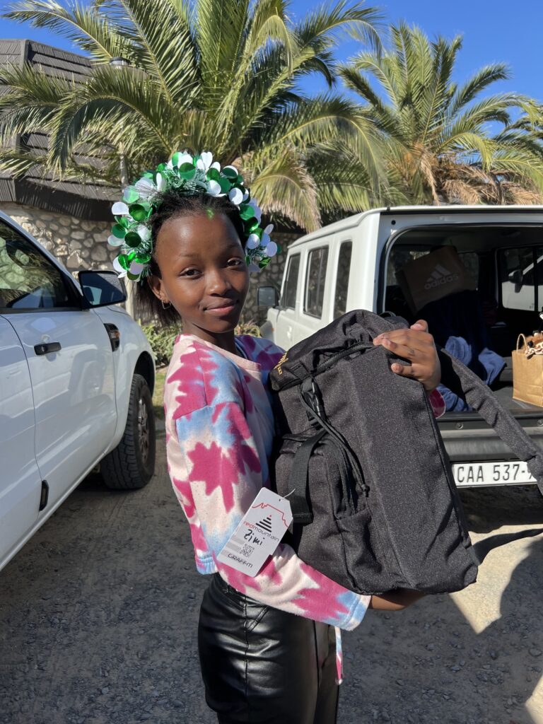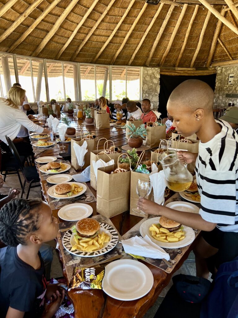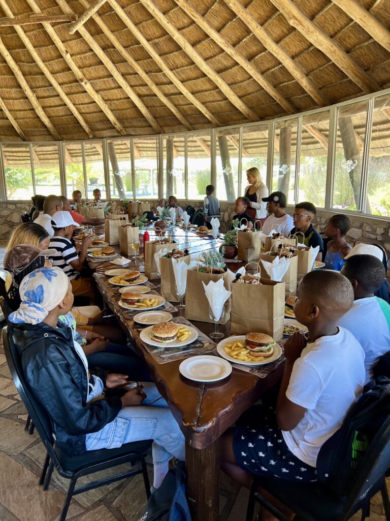 Buffelsfontein hat uns eine schöne Tafel hergerichtet und die Stipendiaten haben von Myoli ein Weihnachtsgeschenk erhalten. Passend zum Anlass gab es Plüschgiraffen von Born Wild Gift, die in Kapstadt hergestellt werden.