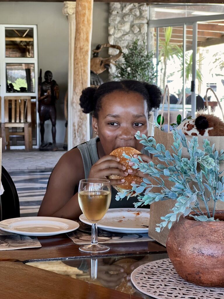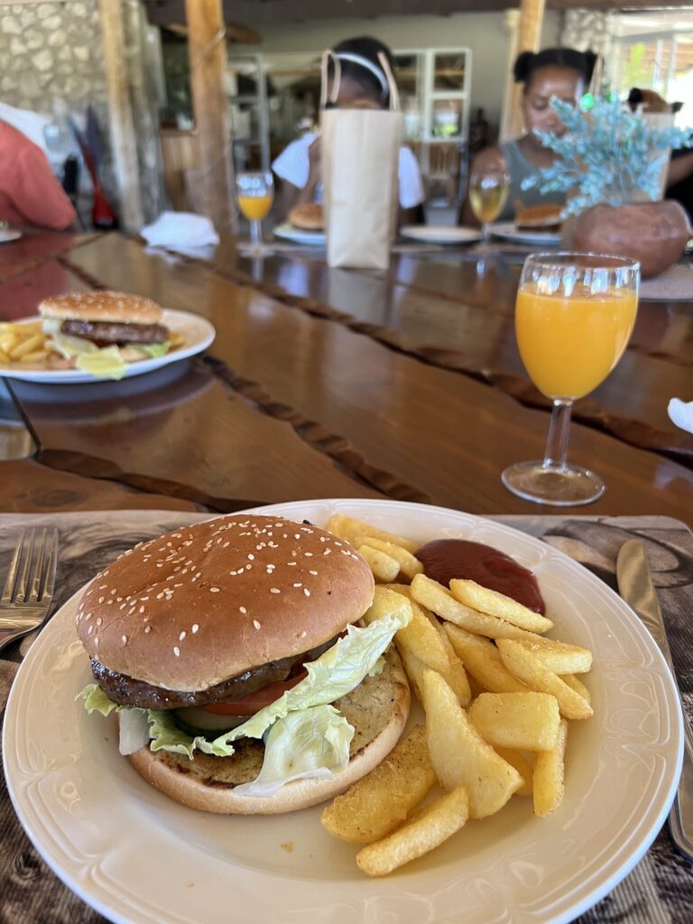 Nach einem leckeren Lunch mit Burger und Eiscreme sind wir auf Safari gegangen.