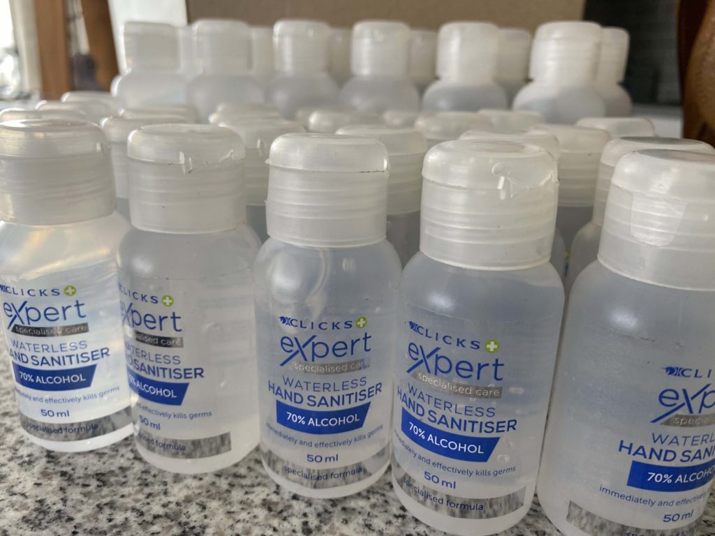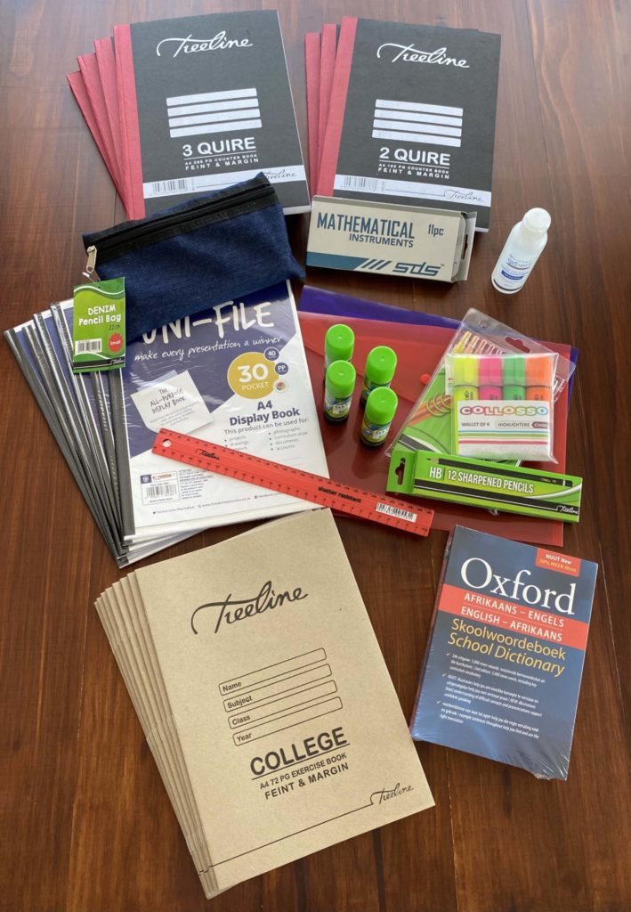 In diesem Jahr war auch Handdesinfektion und ein Afrikaans-Wörterbuch enthalten.