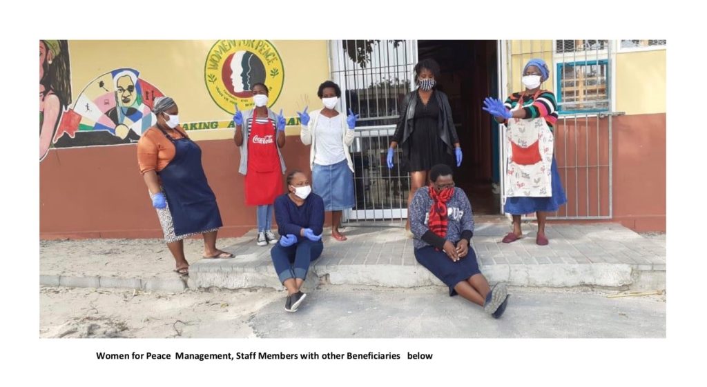 On behalf of our organisation, i would like to extend our gratitudes, joy and happiness for the great food donation towards our Soup kitchen program as from last week. This donation was well received and appreciated by the Management, staff and beneficiaries Women for Peace and this is a great support to us as we are working very hard since the National lockdown has been announced in March. We have decided to stand up, not to fold our hands during this sad time of Covid -19 pandemic attack around the world.